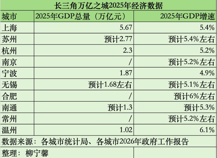 2025年,长三角万亿GDP城市出现新变化,总数增至10个。截至1月27日,上海、杭州、宁波、温州已公布2025年全年经济数据,上海以5.67万亿元继续稳居龙头,杭州为2.3万亿元,宁波未过两万亿元,温州成为新晋万亿之城。
