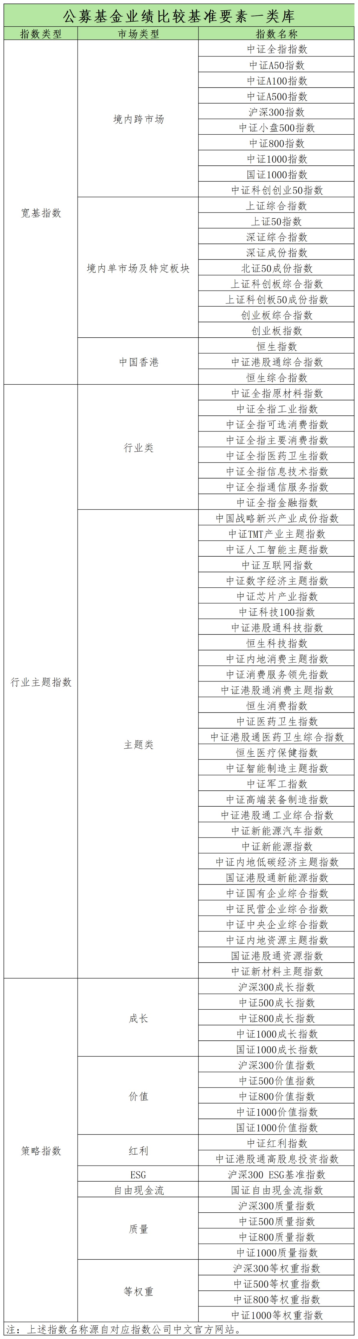 1月27日,中基协发布公募基金业绩比较基准要素库(以下简称基准库)。相关文件明确,主动管理型公募基金投资于境内A股市场、港股市场的资产,可以从基准库中选取基准要素。