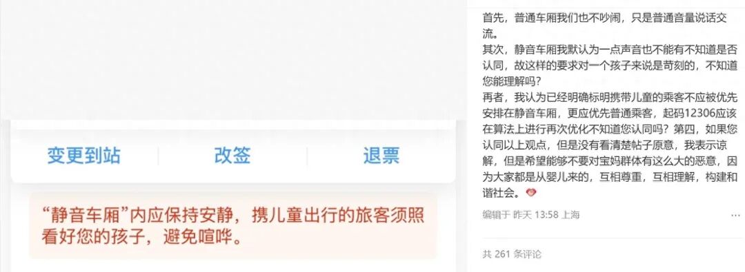 网友标明“带娃出行”仍被分到静音车厢!12306:随机分配,只能小声说话