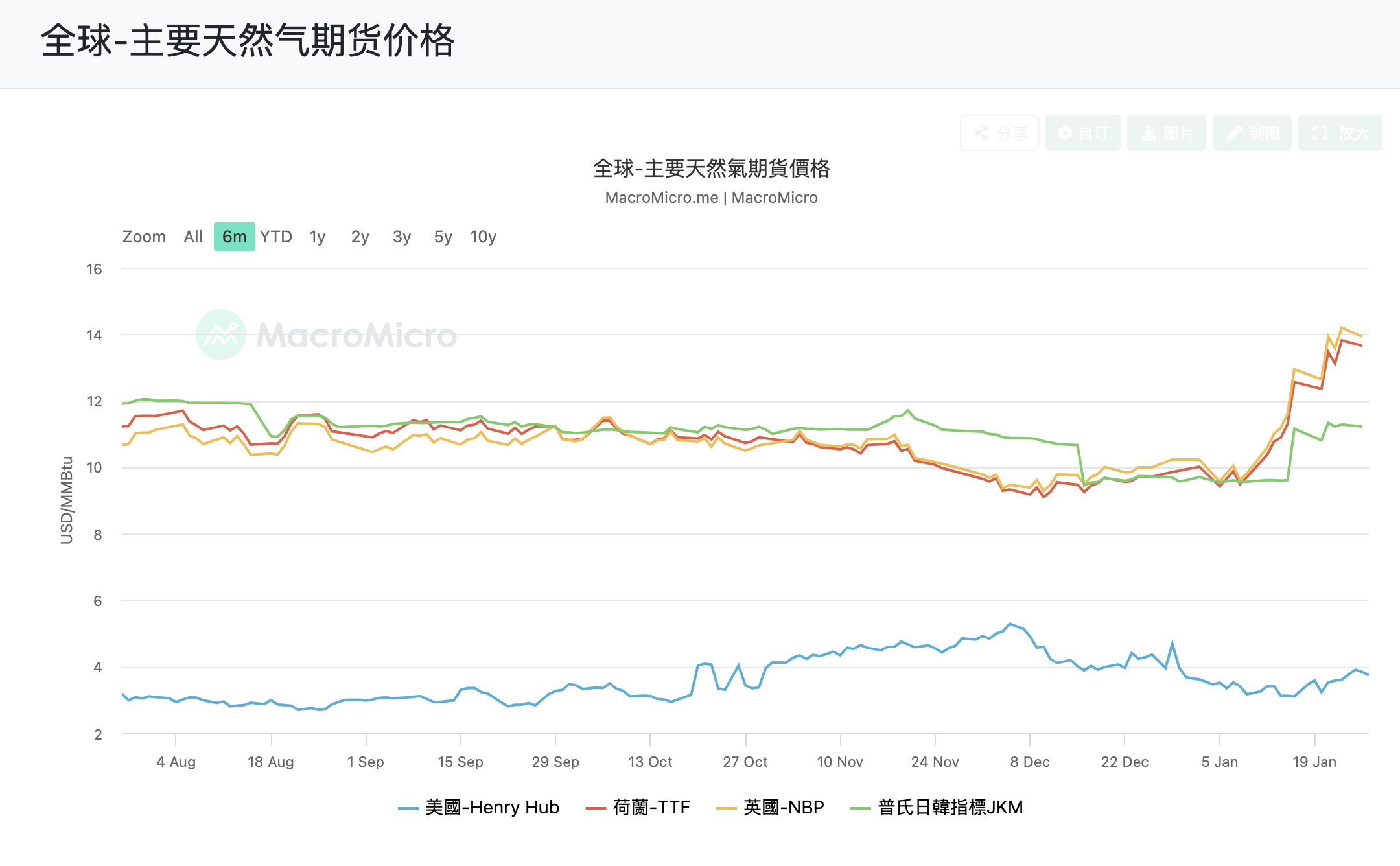 美国天然气价格的暴涨,也进一步带动欧洲及东北亚天然气期货价格提升,形成跨区域的价格传导效应。