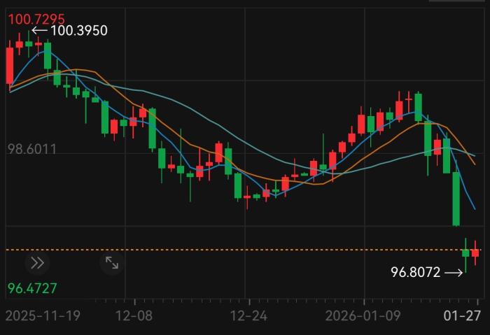 中新网1月27日电据路透社等报道,2026年来,美元再次遭到抛售。美元指数1月26日创下自去年4月以来最大的三日跌幅,并一度下探至去年9月以来的最低水平。