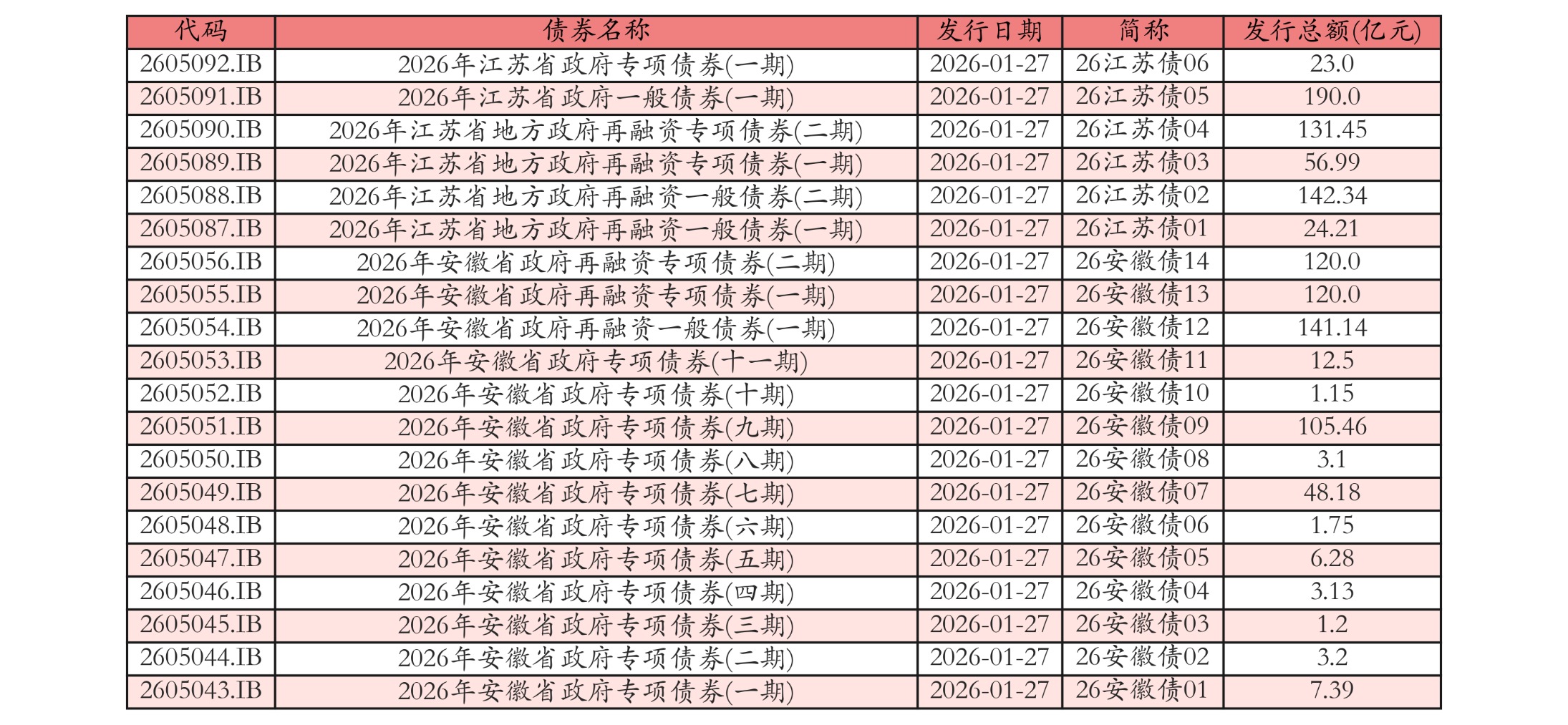 1月27日全国共发行20只地方政府债,共计1142.47亿元