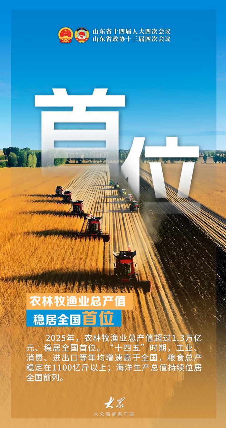 农业则是山东另一条支撑线。山东农林牧渔业总产值连续多年全国第一,农产品出口连续27年全国第一。粮食、蔬菜、水果、水产品产量长期居全国前列。2025年实现农林牧渔业总产值13179.3亿元,按可比价格计算,增长4.4%。
