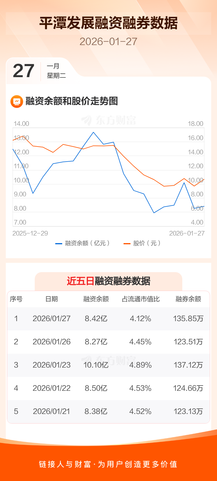 交易所最新数据显示,平潭发展于2026年1月27日获融资买入1.73亿元,融资偿还1.57亿元,当日融资净买入1522.16万元。目前,该股融资余额8.42亿,占流通市值比例为4.12%。