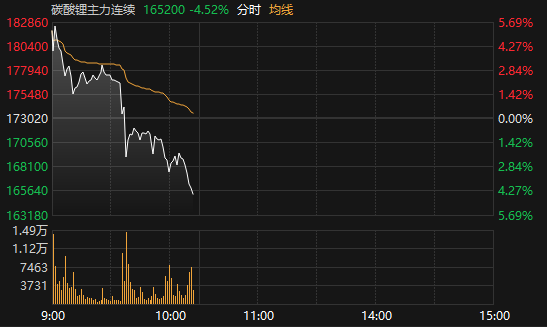碳酸锂连续主力合约跌超4%