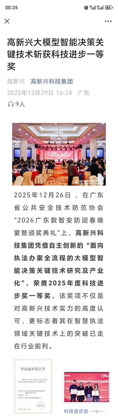 子公司IPO在即!公司大模型智能决策关键技术斩获省一等奖!广东数智安防科技进步奖