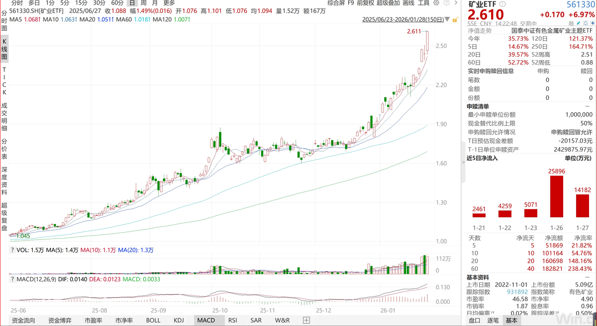 随着全球供应链的重构和新质生产力需求的爆发,曾一度被视为“传统周期股”的矿业板块正被重新定义,并悄然移到了投资者投资的核心位置。从资金流向来看,在矿业ETF(561330)价格持续上涨创新高的背景下,资金依旧坚定加仓,连续20个交易日持续净流入超16亿元,说明矿业板块近期拥有资金追捧的坚实力量。