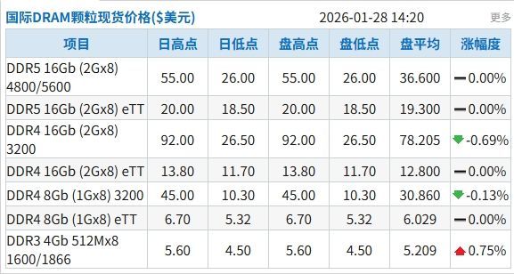 整体稳定,DDR4部分颗粒下跌