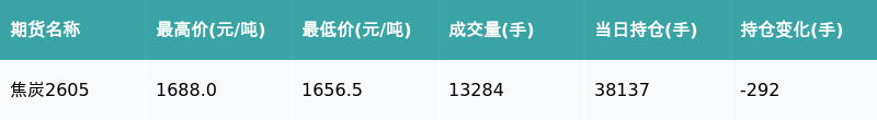 南财智讯1月28日电,盘后期货数据显示,大连商品交易所的焦炭主力合约收跌0.12%,收盘报1684.0元/吨,日内资金流入492.54万元。其他相关指标见下表:
