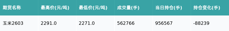 玉米主力合约收跌0.52%