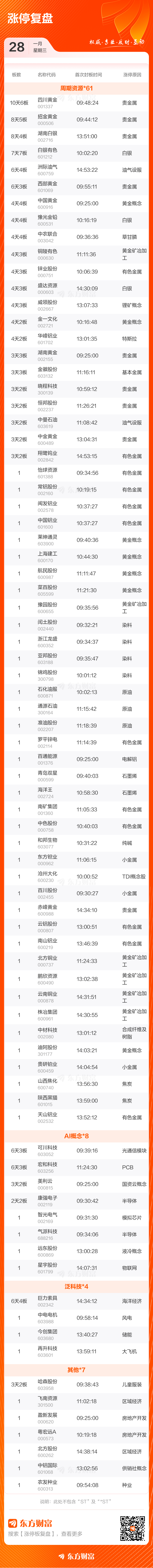 1月28日涨停复盘:84只股涨停 白银有色7连板