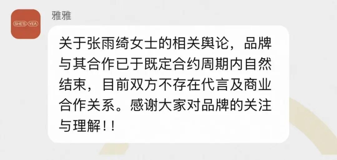 多品牌回应:与张雨绮合作已结束
