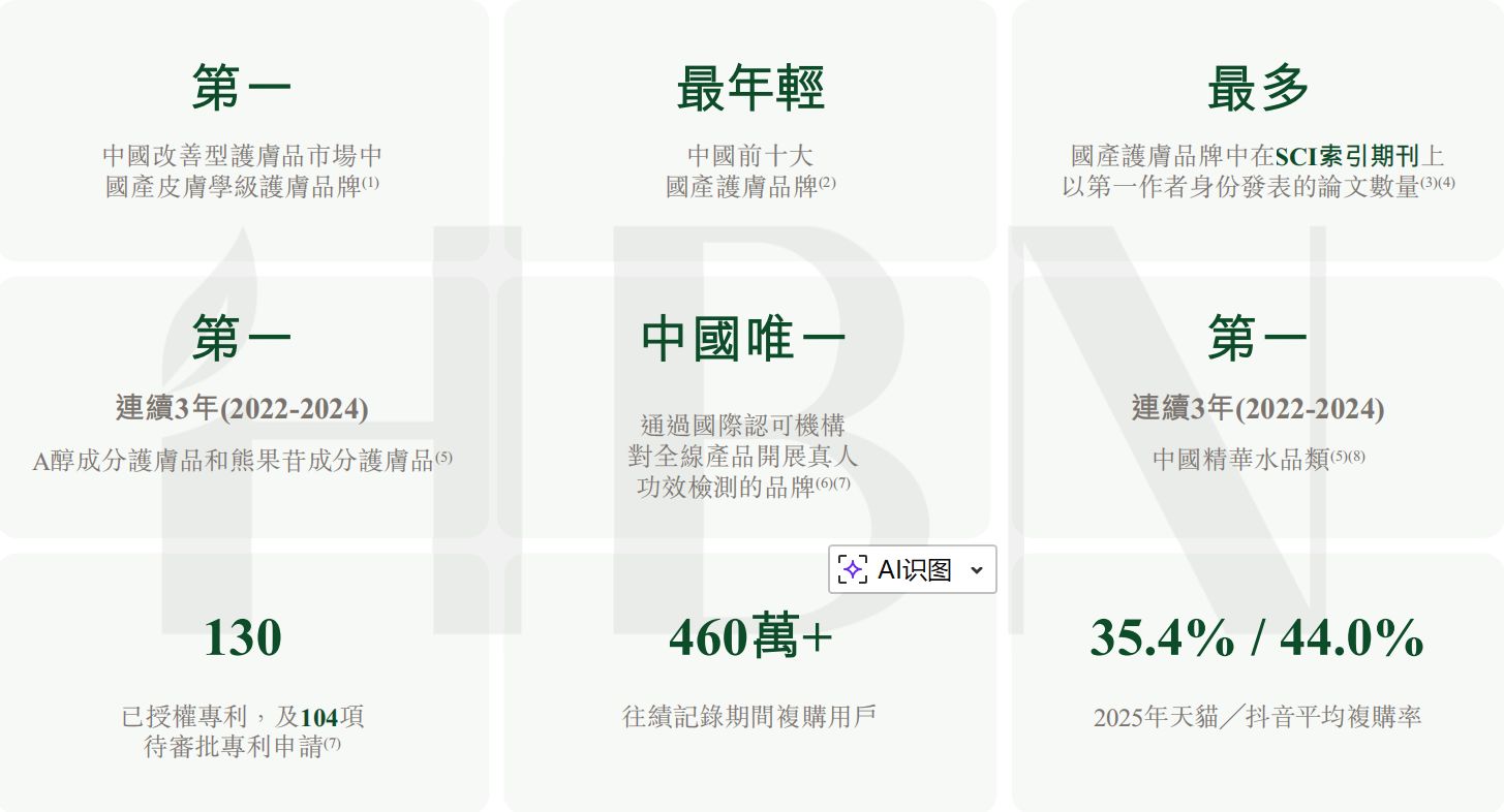 在过往记录期内,HBN已积累超过460万复购用户。2025年,其在天猫及抖音平台的平均复购率分别达到35.4%和44.0%,用户忠诚度在行业中处于领先地位。