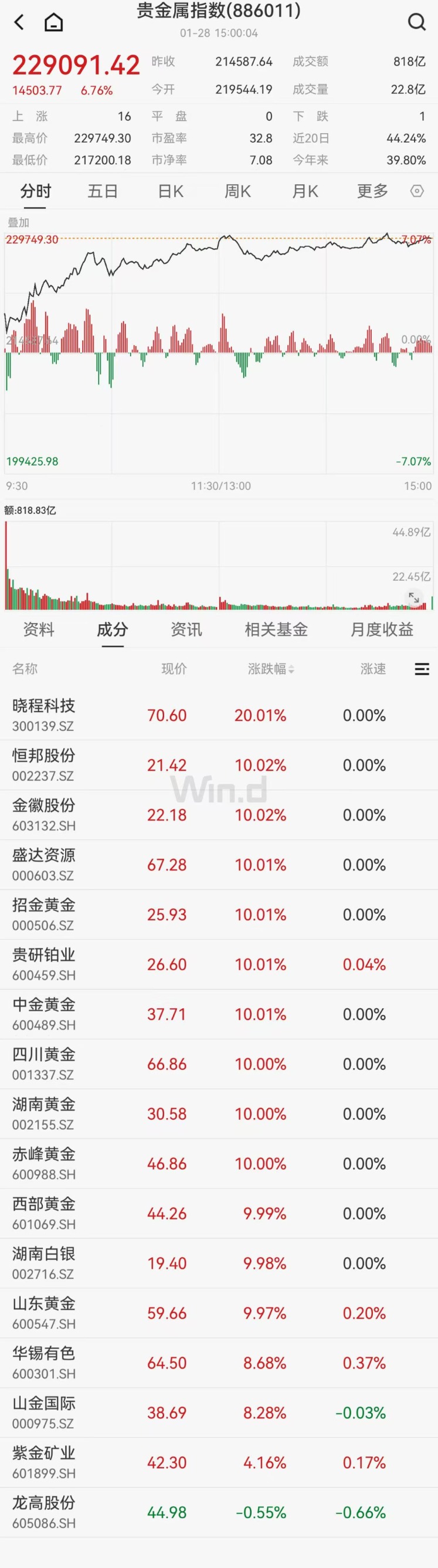 A股市场方面,黄金、有色金属板块1月28日掀涨停潮。Wind数据显示,截至收盘,贵金属指数大涨6.76%,晓程科技(300139)、浩通科技(301026)、常铝股份(002160)、锌业股份(000751)、白银有色(601212)、罗平锌电(002114)等超30股涨停或涨超10%。