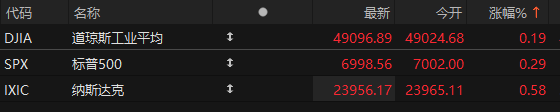 美股早盘三大股指全线走高 纳斯达克金龙指数涨超1%