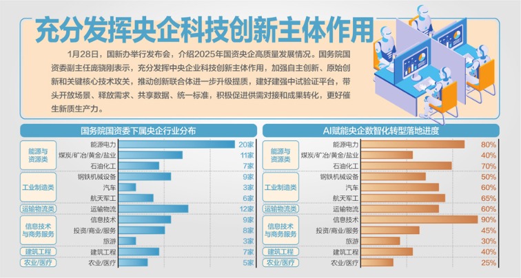 1月28日,国务院新闻办公室举行新闻发布会,请国务院国资委介绍2025年国资央企高质量发展情况。