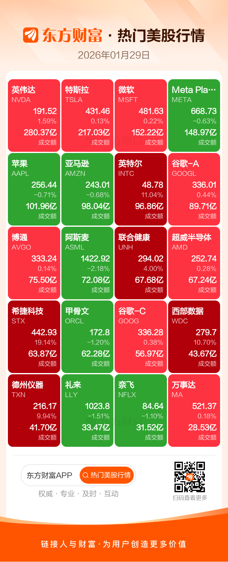 1月28日(周三)热门美股、中概股收盘一览