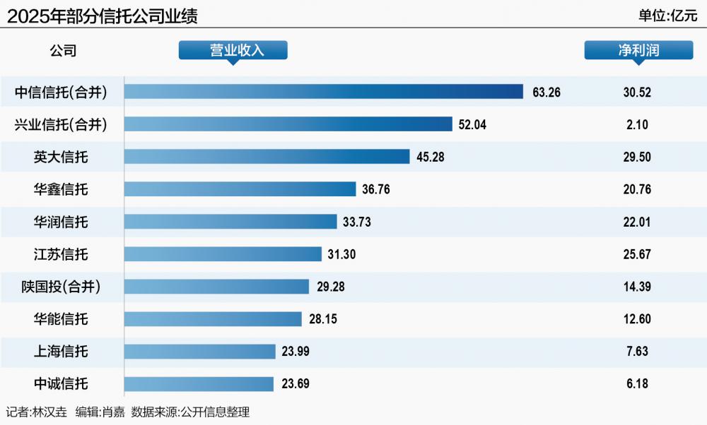 2025年,信托行业呈现营收净利双增但内部分化加剧的格局。
