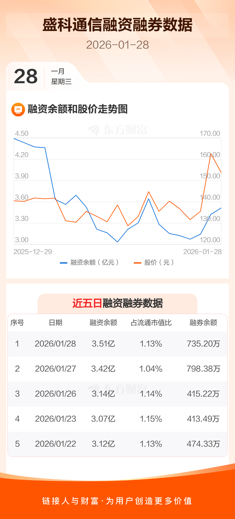 交易所最新数据显示,盛科通信于2026年1月28日获融资买入9499.02万元,融资偿还8564.81万元,当日融资净买入934.2万元。目前,该股融资余额3.51亿,占流通市值比例为1.13%。