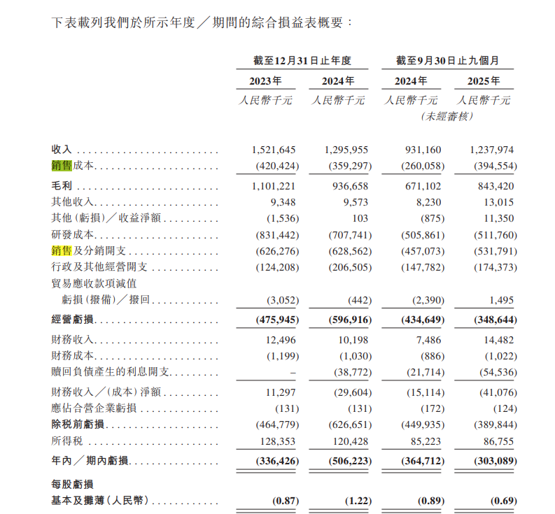 结果就是,先声再明毛利根本就没有办法覆盖运营成本,2023年和2024年分别亏损3.36亿元、5.06亿元,2025年前三季度继续亏损3.03亿元。