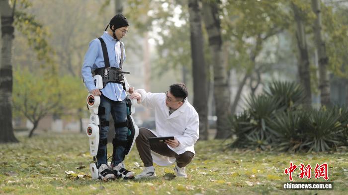 天津大学神经工程团队自主研发的首款神经调控式机械外骨骼机器人系统“神工-神甲”。天津大学供图
