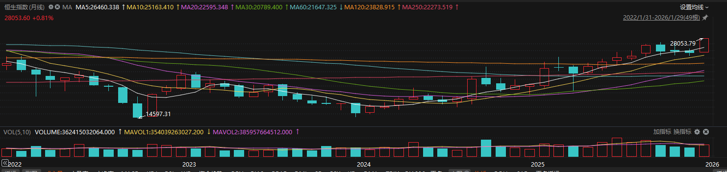 上证报中国证券网讯 1月29日午后,恒生指数震荡走强,站上28000点关口,最高报28053.79点,刷新四年新高。