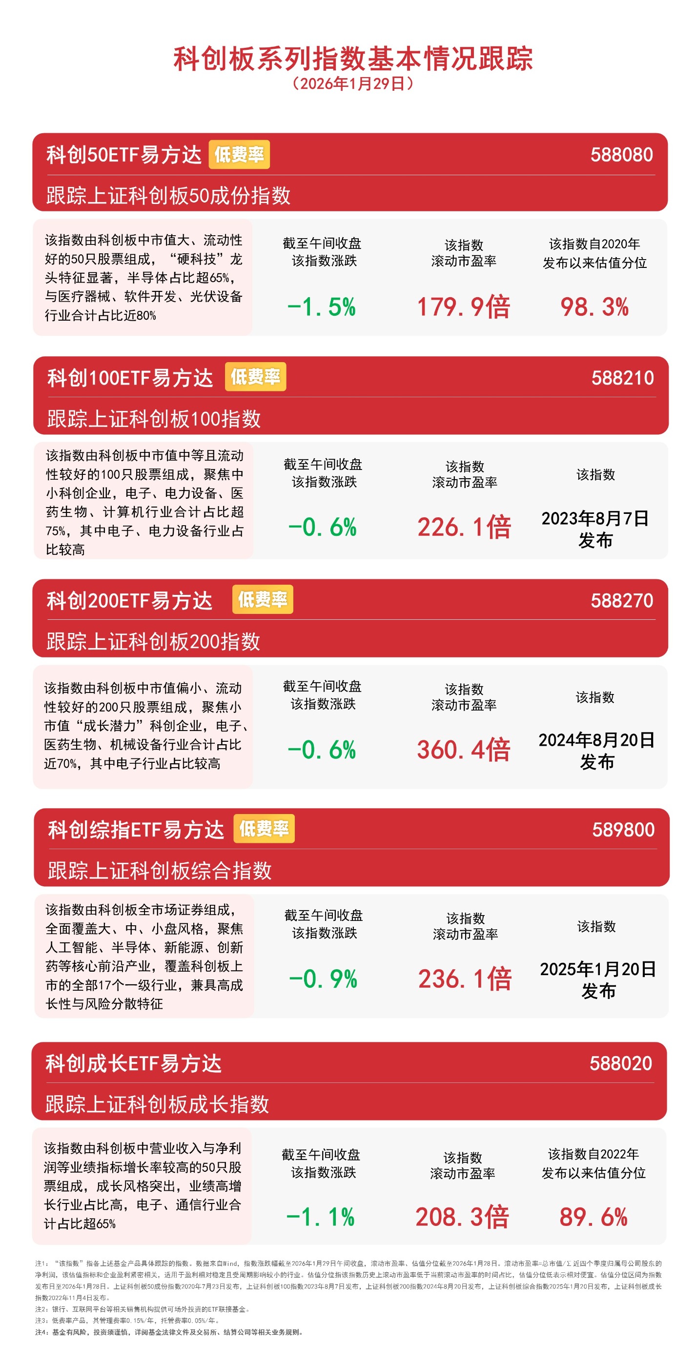科创板系列指数集体回调,关注科创200ETF易方达(588270)、科创50ETF易方达(588080)等布局机会