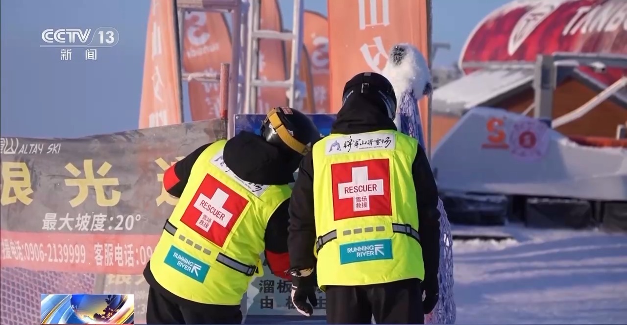 滑雪巡救员玛那普汗:每个20分钟巡查一个雪道。关注我们的雪友,比如说有些游客不太清楚他自己的滑行能力,然后就上到高级道,我们会劝退他先去中级道先去练习。每一个雪季,我们的医院也好,急救的单位工作人员也会给我们过来培训。