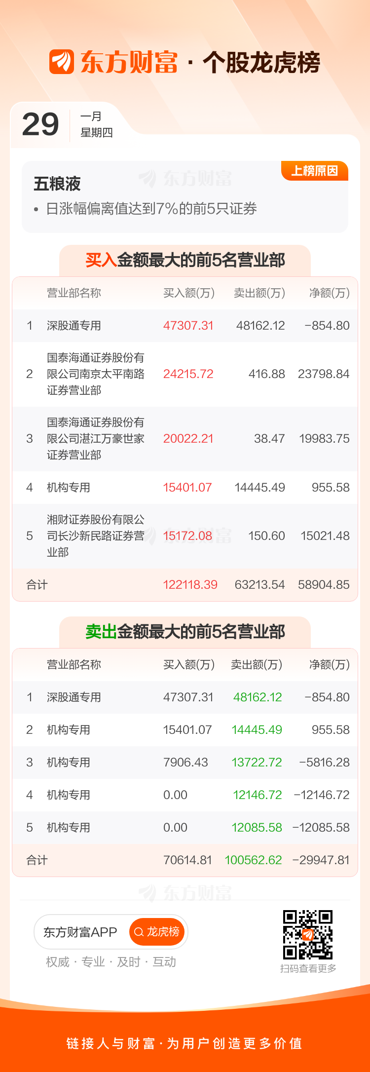 五粮液(000858)龙虎榜数据(01-29)