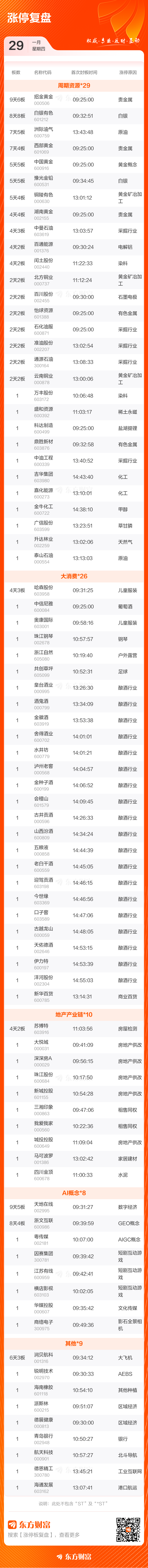1月29日涨停复盘:86只股涨停 招金黄金9天6板