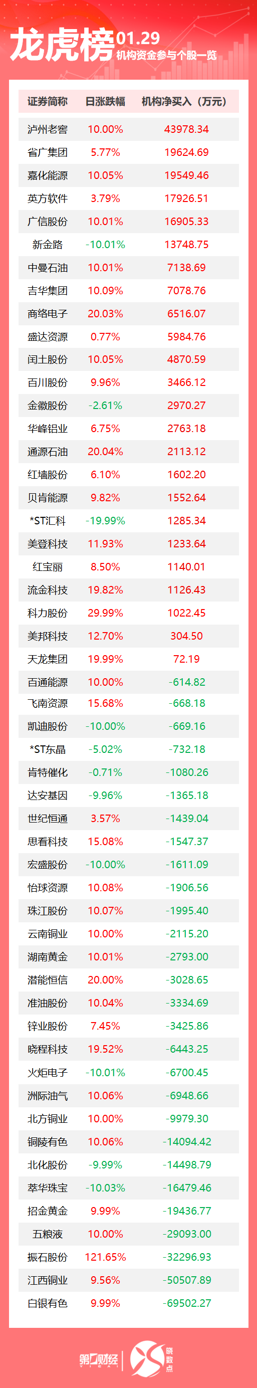 龙虎榜丨机构今日抛售这28股,买入泸州老窖4.4亿元