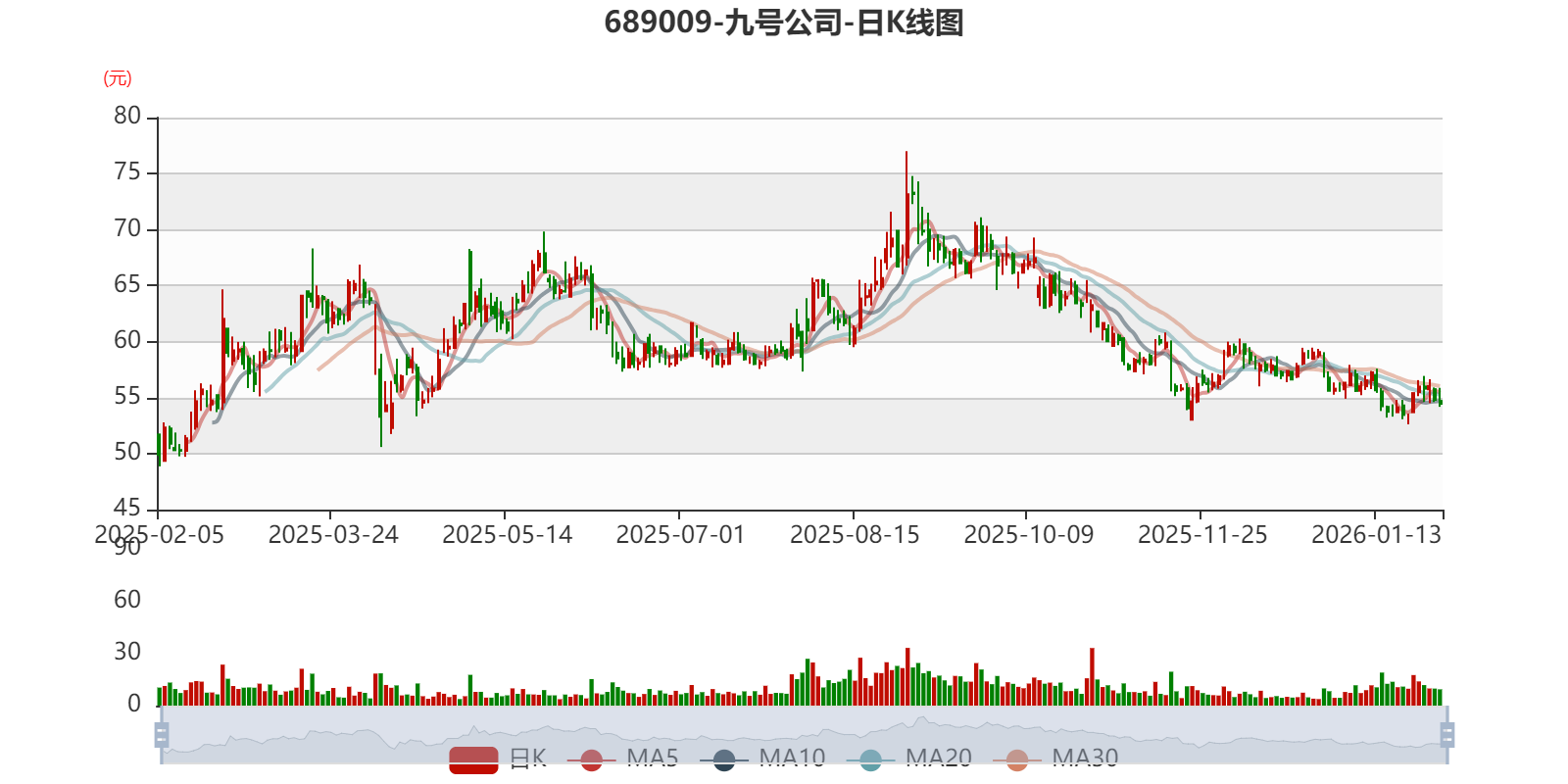 中证智能财讯九号公司(689009)1月29日晚间披露2025年度业绩预告,预计2025年归母净利润16.7亿元至18.5亿元,同比增长54.04%-70.64%;扣非净利润预计16.2亿元至17.9亿元,同比增长52.51%-68.51%。以1月29日收盘价计算,九号公司目前市盈率(TTM)约为21.23倍-23.52倍,市净率(LF)约5.73倍,市销率(TTM)约1.81倍。