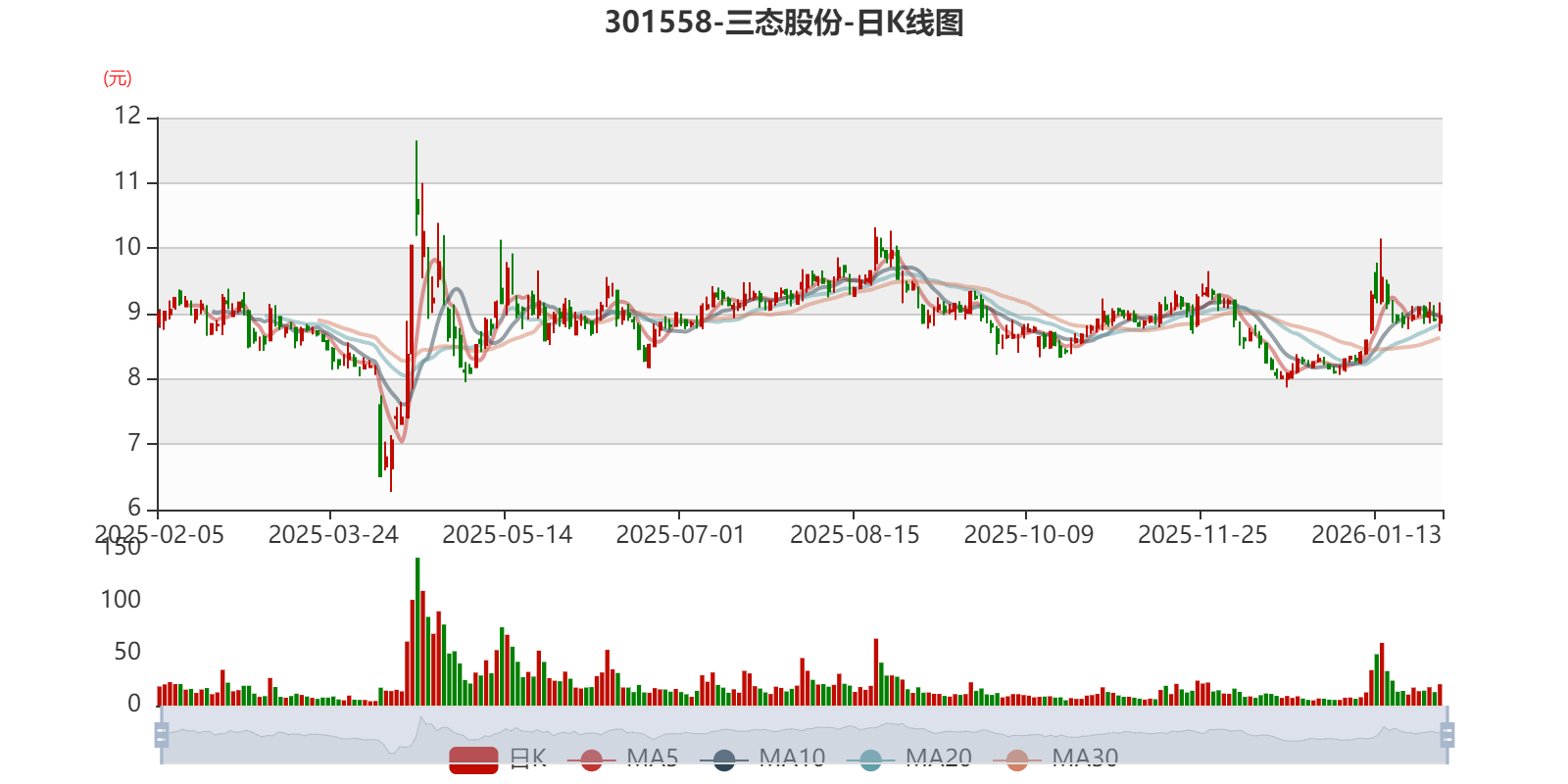 中证智能财讯三态股份(301558)1月29日晚间披露2025年度业绩预告,预计2025年归母净利润3650万元至5400万元,同比增长154%-275.78%;扣非净利润预计2000万元至2950万元,上年同期亏损467万元。以1月29日收盘价计算,三态股份目前市盈率(TTM)约为130.89倍-193.65倍,市净率(LF)约5.21倍,市销率(TTM)约4.03倍。