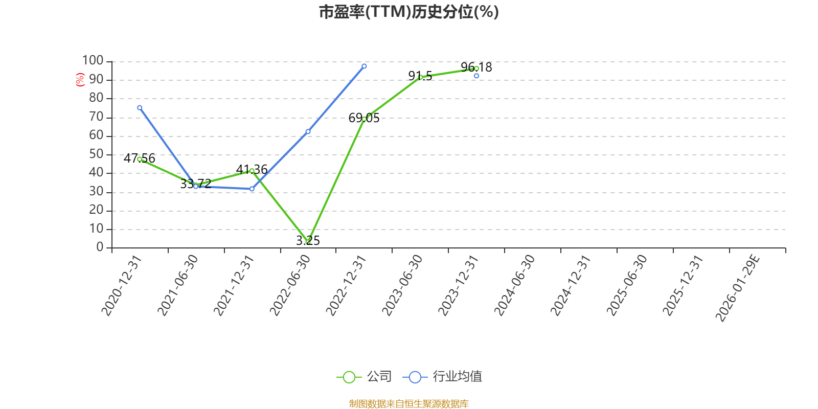 市盈率、市净率为负时,不显示当期分位数,会导致折线图中断。