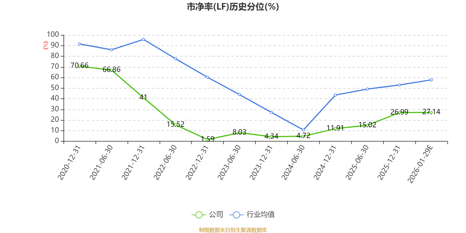 市盈率、市净率为负时,不显示当期分位数,会导致折线图中断。