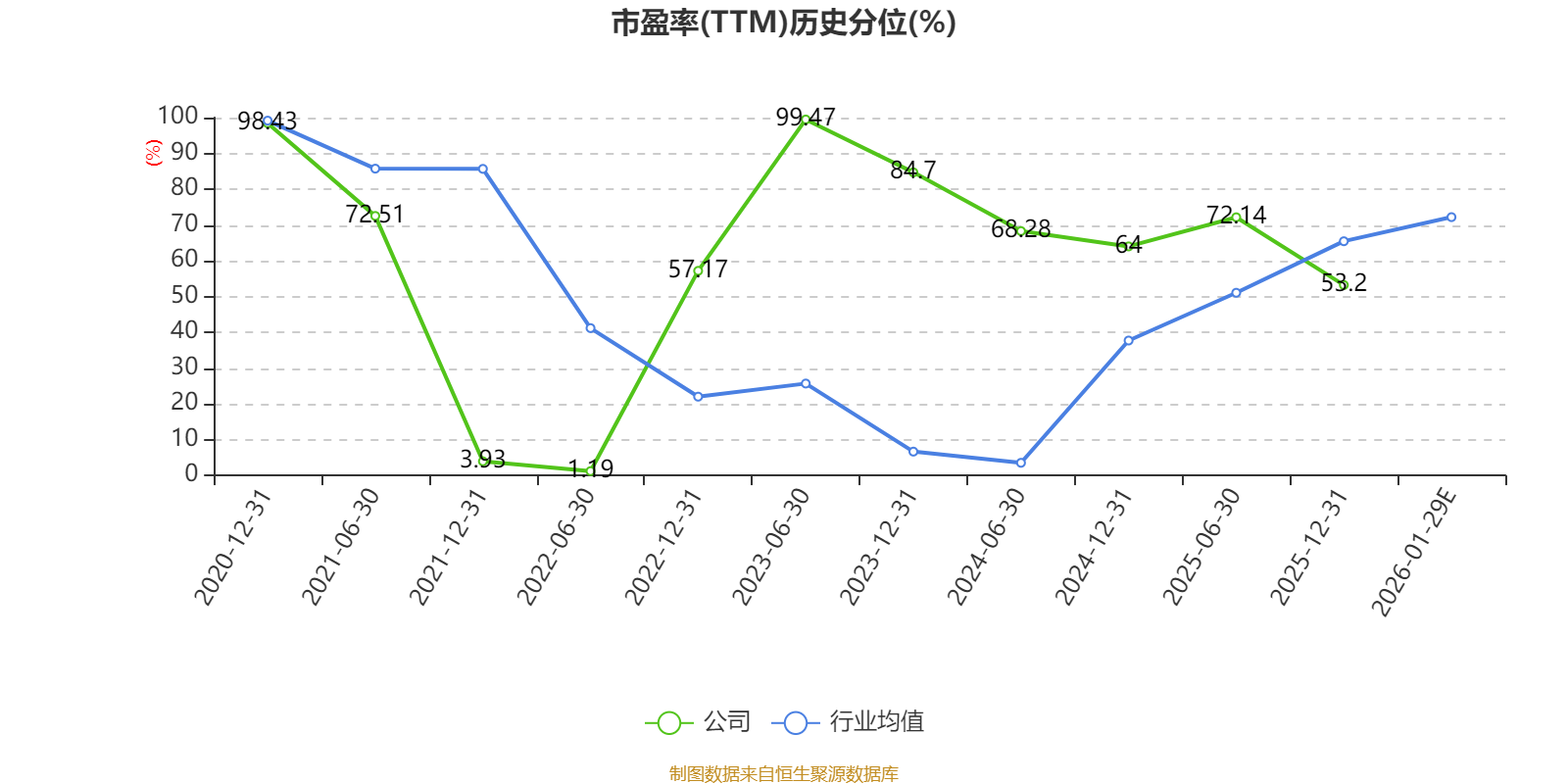以本次披露业绩预告均值计算,公司近年市盈率(TTM)图如下所示: