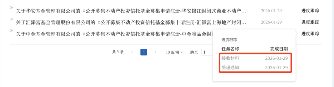 1月29日,证监会官网显示,首批三只商业不动产REITs——华安锦江封闭式商业不动产证券投资基金、汇添富上海地产封闭式商业不动产证券投资基金以及中金唯品会封闭式商业不动产证券投资基金正式上报,同日就获证监会受理。