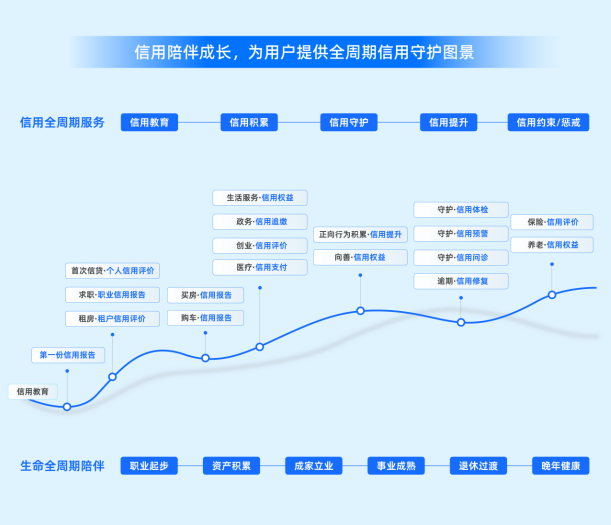 在产品闭环层面,信用服务突破传统事后惩戒局限,形成覆盖信用守护、修复、激励、教育与约束的全链条服务体系;服务闭环则贯穿人生全周期,从18岁生成首份信用报告开始,逐步嵌入求职、租房、信贷、医疗等关键场景,同时适用于小微企业和个体工商户,增强实体经济抗风险能力。