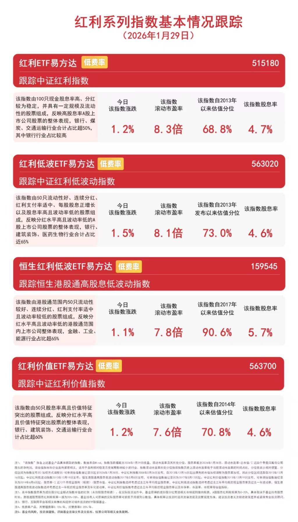 据悉,易方达基金是目前唯一一家红利类ETF全部实行低费率的基金公司,旗下恒生红利低波ETF易方达(159545)、红利ETF易方达(515180)、红利低波ETF易方达(563020)、红利价值ETF易方达(563700)、A500红利低波ETF易方达(563510)等产品的管理费率均为0.15%/年,可助力投资者低成本布局高股息资产。