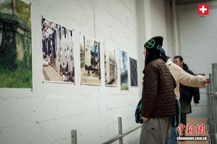 1月28日,参观者在中瑞零碳建筑项目成果展现场观看展品。瑞士驻华大使馆供图
