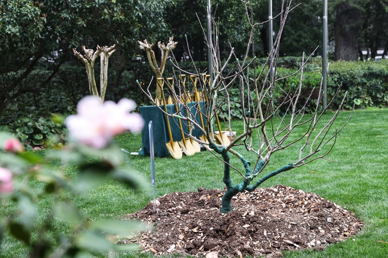 栽种在上海科学会堂草坪上的“牛顿苹果树”。资料照片。本报记者赖鑫琳摄