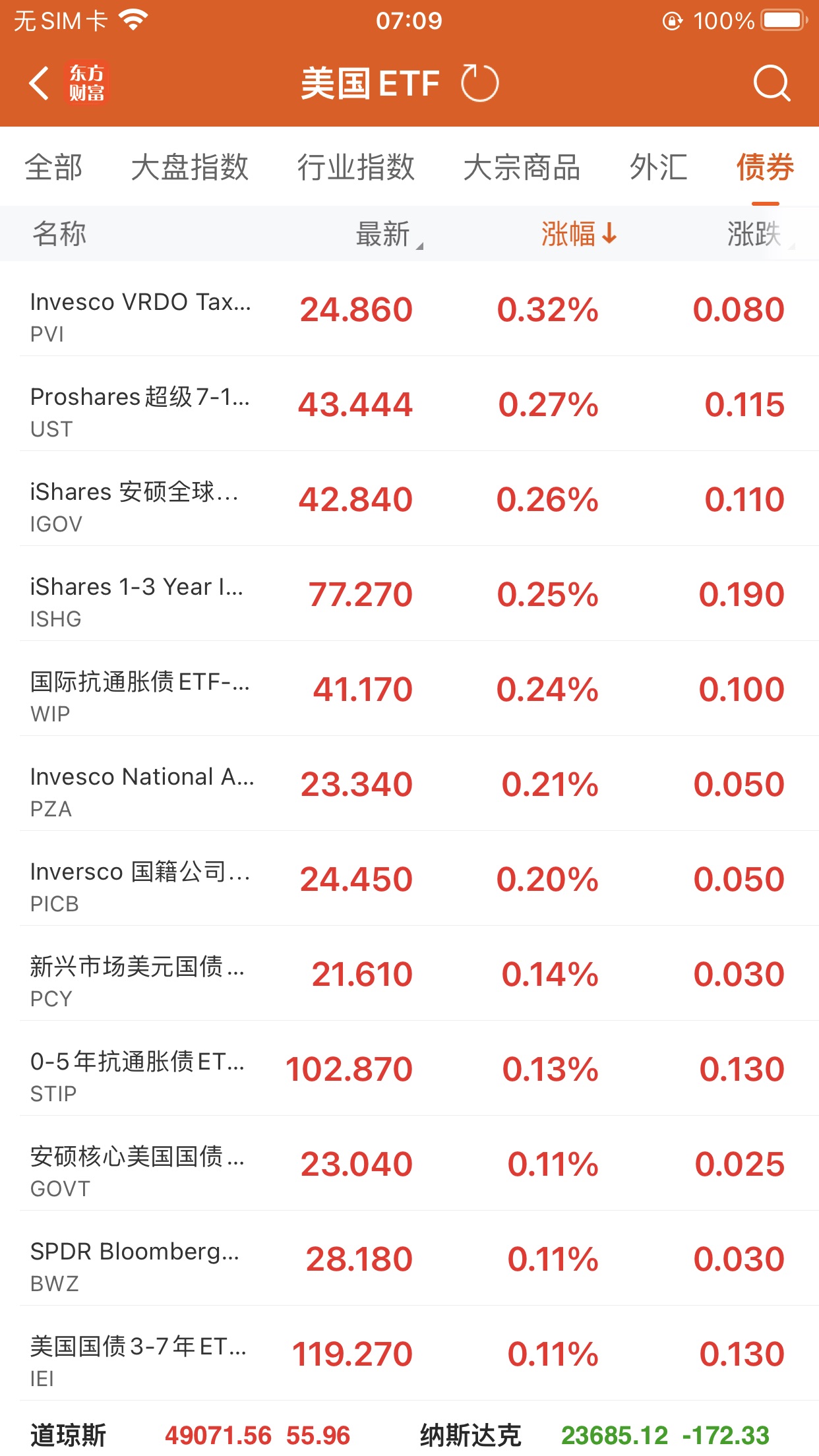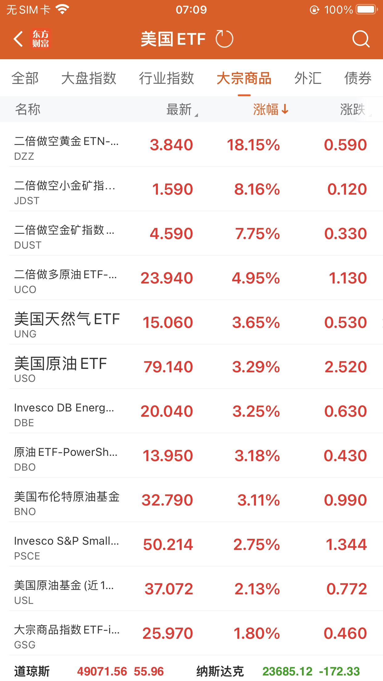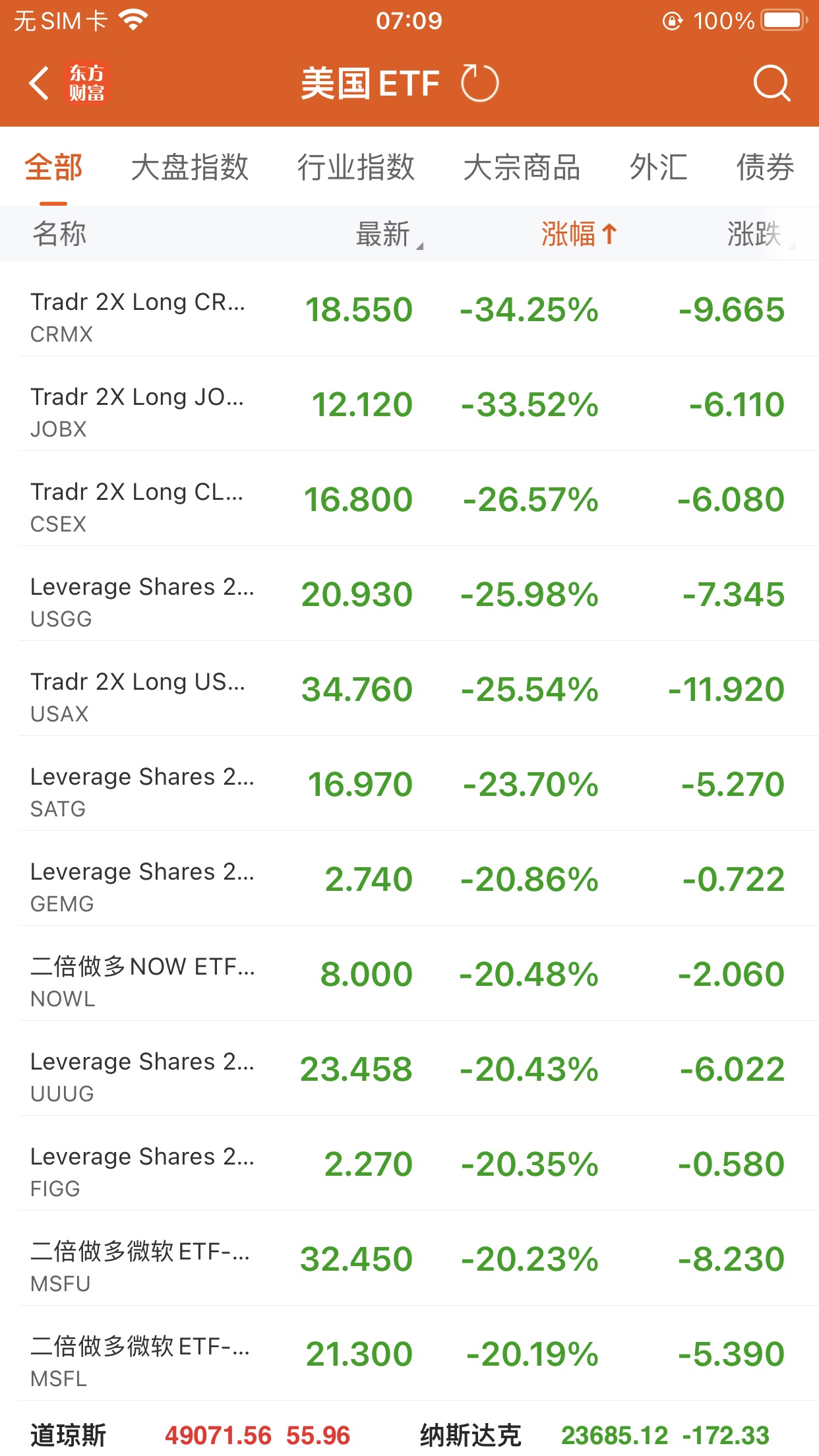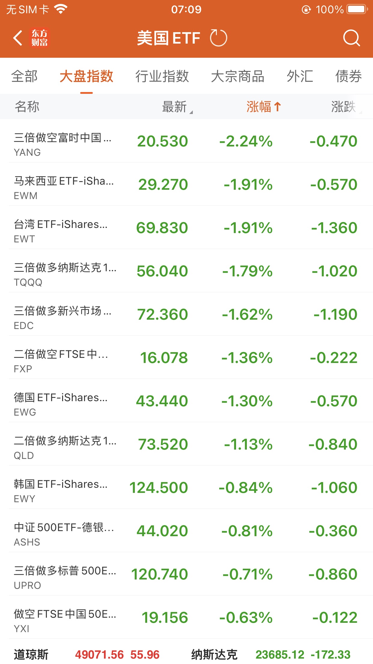 美股大型指数ETF跌幅榜Top5