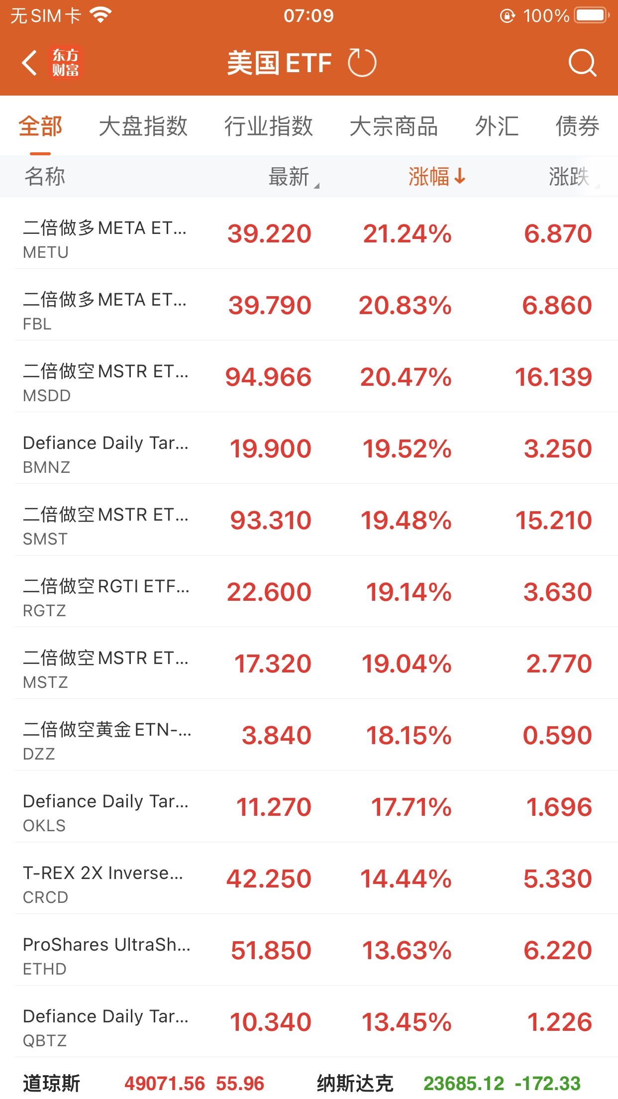美股ETF升幅榜Top5