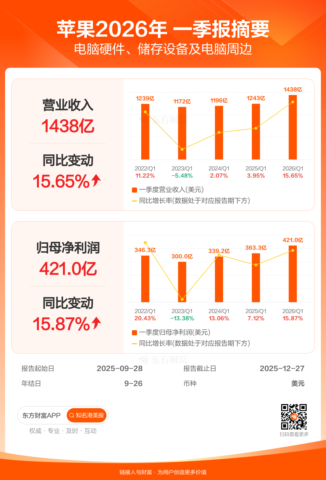 图解财报:苹果一季报盈利420.97亿美元,同比增加15.87%