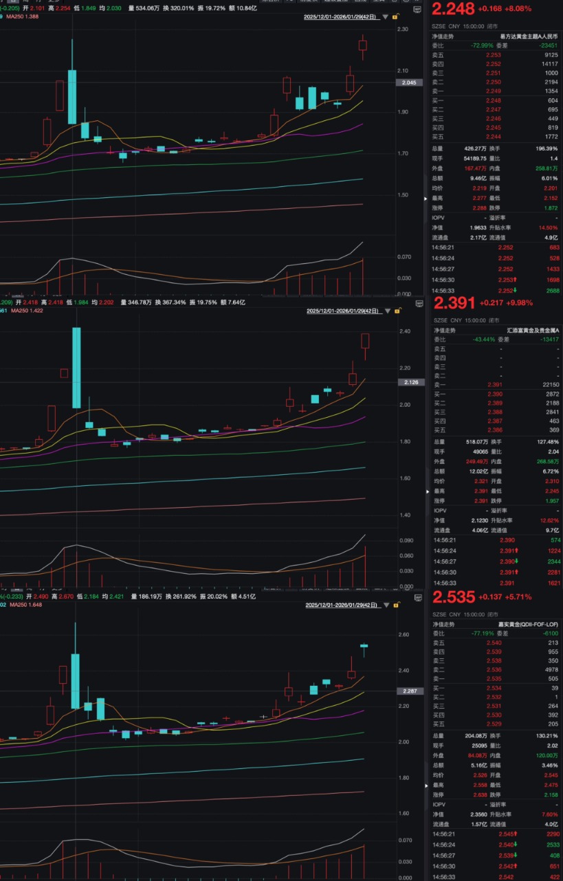 限购的背后,是溢价波动带来的实际投资风险。上述三只黄金LOF的场内价格均在2025年12月25日触及阶段高点,此后显著回落且暂未再返回前期高位。