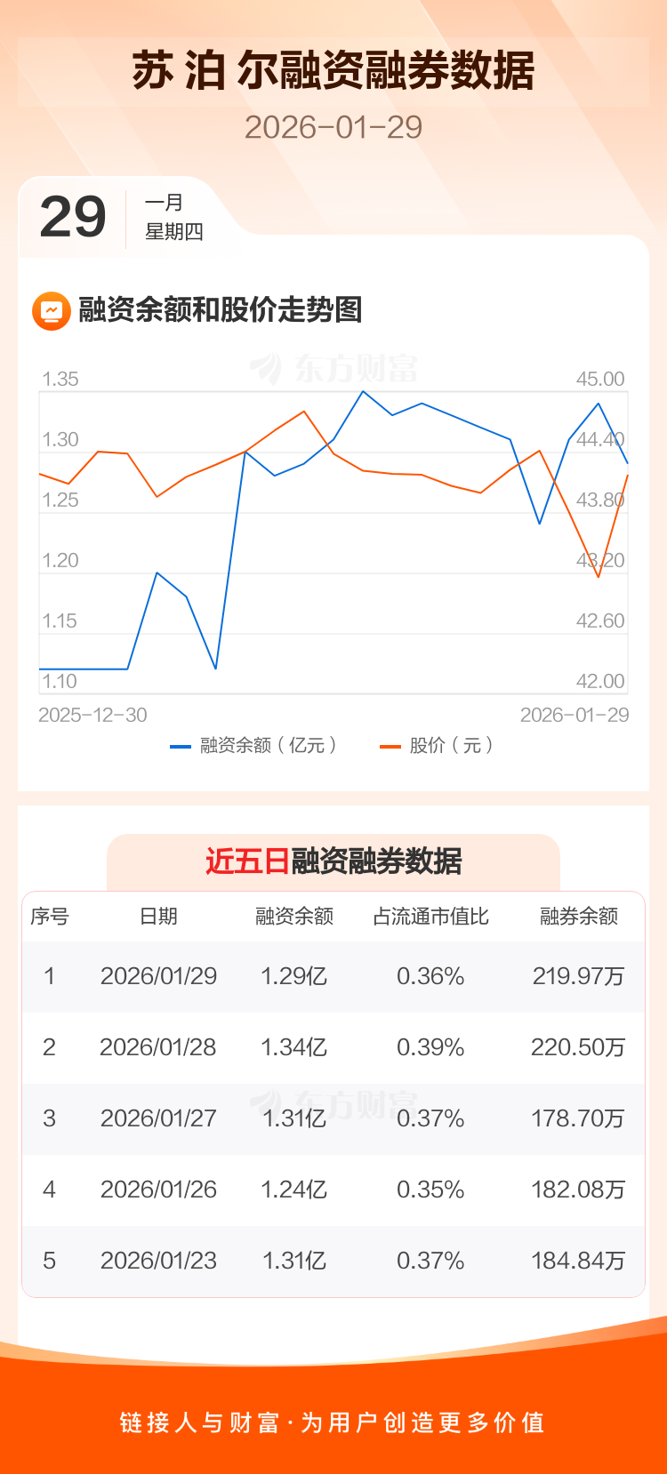 交易所最新数据显示,苏 泊 尔于2026年1月29日获融资买入542.71万元,融资偿还1039.08万元,当日融资净偿还496.37万元。目前,该股融资余额1.29亿,占流通市值比例为0.36%。