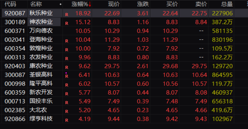 种业概念股掀起涨停潮