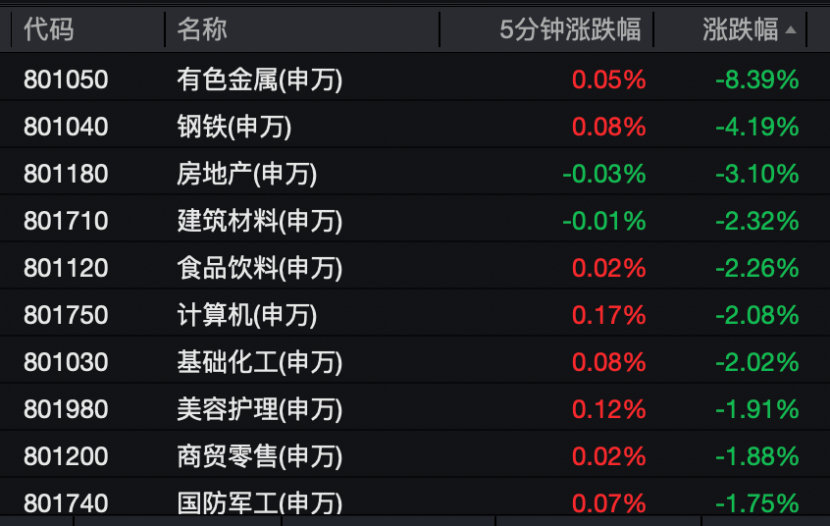A股有色金属板块大幅调整。