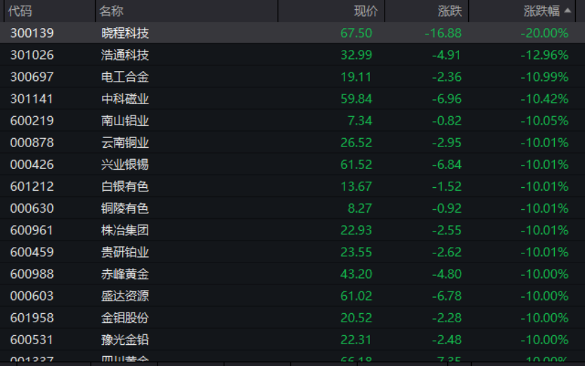 A股有色金属股批量跌停逾30股跌停