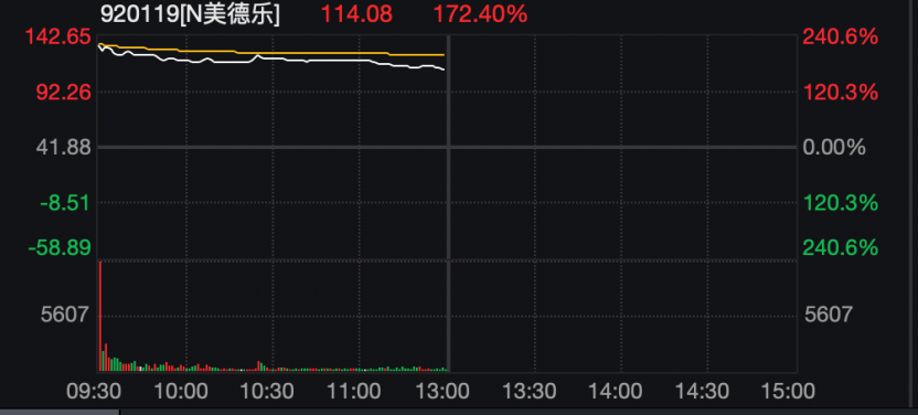 新股美德乐上午盘中一度大涨超过240%